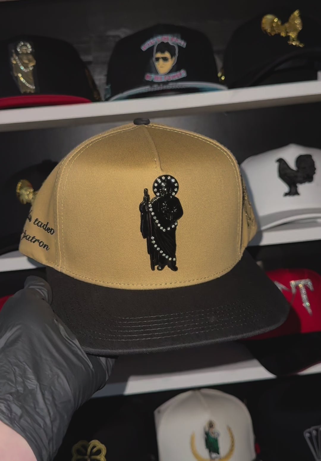Gorra Snapback de san Juditas tadeo con un pin metalico adiamantado.